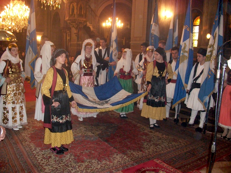 Μετά την εκκλησία, οι παρευρισκόμενοι σχημάτισαν πομπή και κατευθύνθηκαν στο Σύνταγμα, όπου έγινε κατάθεση στεφάνων στο Μνημείο του Άγνωστου Στρατιώτη και εψάλη ο Εθνικός Ύμνος.