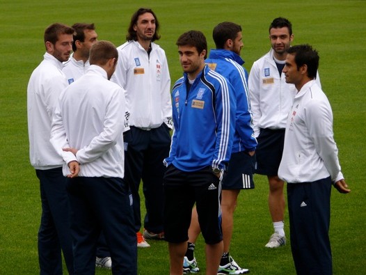 An dieser Stelle noch eine kleine, dafür sehr nennenswerte Episode, in der Kostas Karagounis die Hauptrolle spielt. Trotz enormem Zeitdruck, widmete er sich als Einziger einem griechischen Fan. Dieser, ein betagter Herr, im Rollstuhl sitzend, hat es sich nicht nehmen lassen, im unfreundlichen Wetter auszuharren und das Spiel direkt vom Spielfeldrand zu verfolgen. Anschließend wartete er vor dem Mannschaftsbus auf die Spieler. Kostas Karagounis nahm sich ganze fünf Minuten Zeit für freundliche Worte und ein Autogramm. Bravo Kosta, das nenne ich ein Herz für Fans.