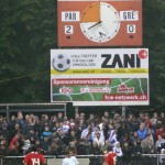 Der Schweizer Wettergott ist dagegen schon länger verstimmt, es regnet seit Anfang Mai kontinuierlich. Nieselregen den ganzen Tag, und während der letzten 15 Spielminuten schüttete es aus Kübeln. Doch das sollte der Stimmung keinen Abbruch leisten. Das Match begann nach der viersprachigen Ansage in Deutsch, Englisch, Spanisch und Griechisch und den beiden Nationalhymnen, spannend mit einer Torchance für die Griechen. Leider verlief das Spiel dann anders, als es sich die blau-weissen Fans erhofft hatten: Resultat: 0:2 (Griechenland – Paraguay).