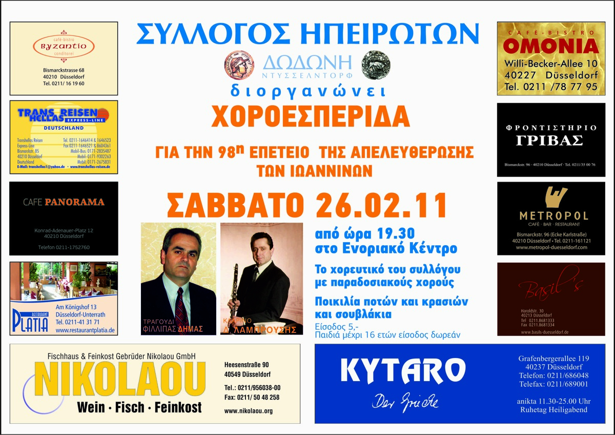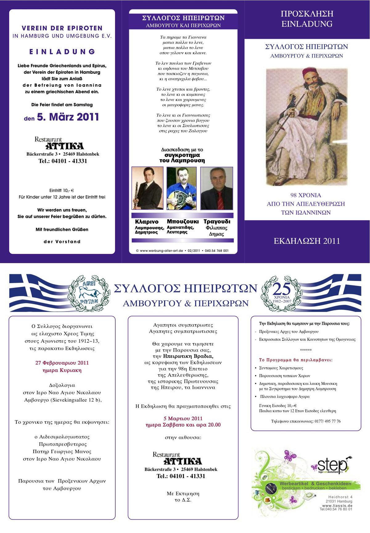 – Σάββατο 05 Μαρτίου 2011, ΗΠΕΙΡΩΤΙΚΗ ΒΡΑΔΙΑ στο Restaurant ATTIKA, Bäckerstraße 3 • 25469 Halstenbek