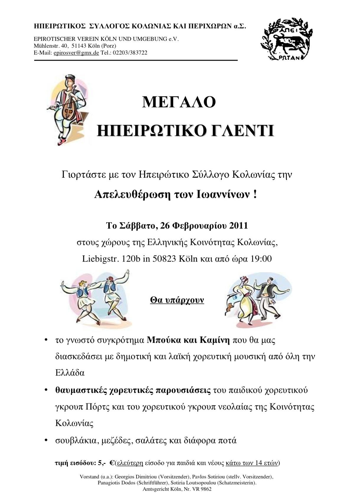στους χώρους της Ελληνικής κοινότητας Kολωνίας, Liebigstr. 120b, 50823 Köln