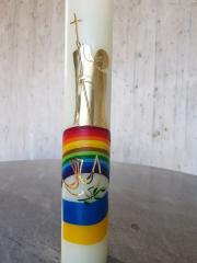 Ο πάστορας κ. Mensing άναψε το στολισμένο με πλούσιο συμβολισμό „Κερί της Ειρήνης“ στο οποίο είναι αποτυπωμένα ο Αρχάγγελος Μιχαήλ, μαχόμενος το κακό, και ένα περιστέρι με τον κλάδο ελαίας περιτυλιγμένο από ένα ουράνιο τόξο και την σημαία της Ουκρανίας, με τα χρώματα μπλε και κίτρινο. Το κερί είναι δώρο της γειτονικής γυνακείας ρωμαιοκαθολικής Μονής και κατασκευάστηκε από την μοναχή Βενεδίκτη, που ως μικρό κορίτσι βίωσε τους βομβαρδισμούς του Β΄Παγκοσμίου Πολέμου, κρυμμένη σε ένα καταφύγιο στη Βιέννη.
