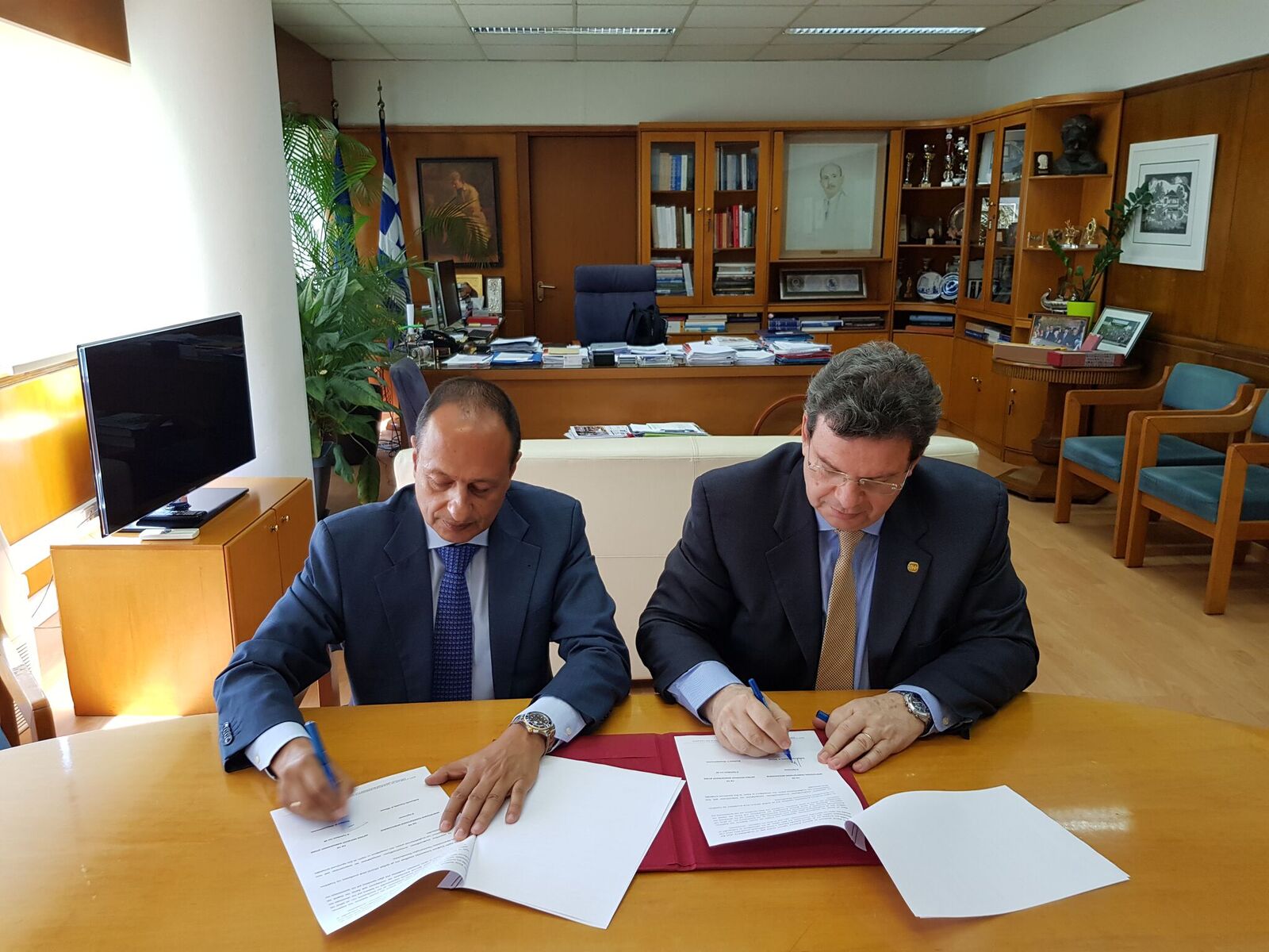 Ο Πρόεδρος του ΔΣ του ΙΜΜΑ, Νικόλαος Κ. Μαργαρόπουλος και ο Πρύτανης του ΑΠΘ, Καθηγητής Περικλής Α. Μήτκας υπογράφουν το Σύμφωνο Συνεργασίας