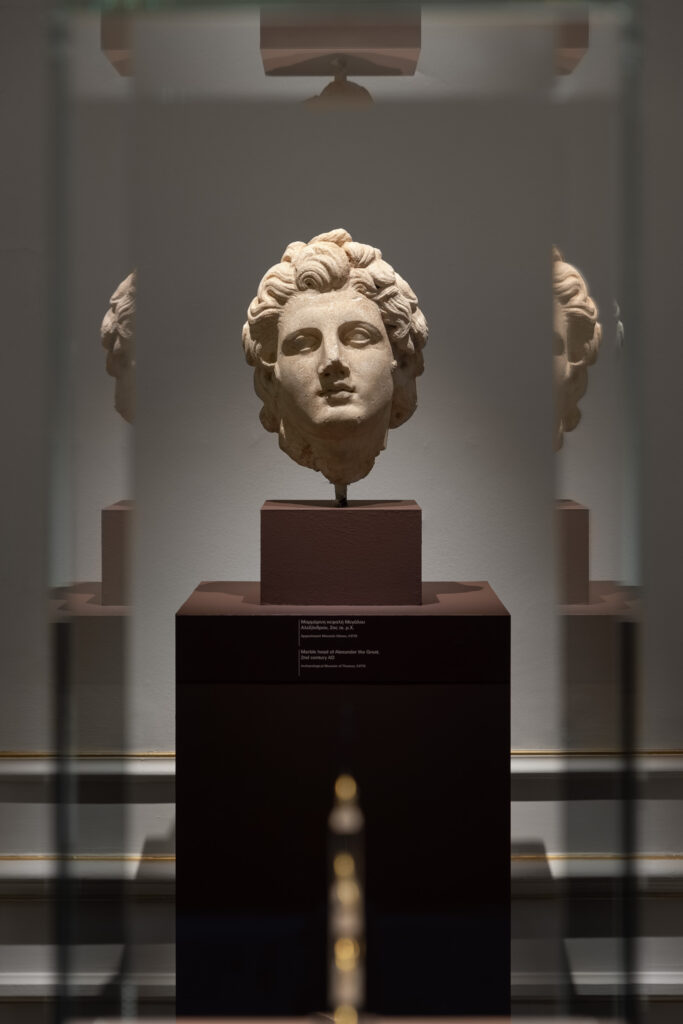 Η έκθεση περιλαμβάνει 240 αρχαιότητες και ιστορικά τεκμήρια προερχόμενα από 27 Μουσεία και Ιδρύματα του εσωτερικού και τέσσερεις ιδιωτικές συλλογές, πολλά εκ των οποίων εκτίθενται για πρώτη φορά. Παρουσιάζονται επίσης δύομαρμάρινες προτομές από τοΜουσείο Chiaramonti τουΒατικανού ενώ μεγάλος «Απρόσμενος Επισκέπτης» είναι το έργο «Μέγας Αλέξανδρος» (1981) του AndyWarhol από το MOMus – Μουσείο Σύγχρονης Τέχνης.