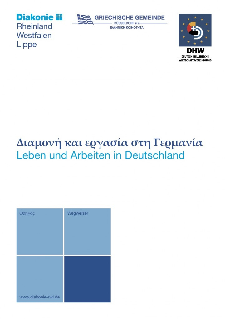 Vor dem Hintergrund der Wirtschaftskrise in Griechenland steigt die Zahl der Neuzuwanderer aus Griechenland nach Deutschland, viele davon auf der Suche nach besseren Arbeitsmöglichkeiten. Ein zweisprachiger Wegweiser „Leben und Arbeiten in Deutschland“ soll ihnen den Start in Deutschland erleichtern. Themen sind Sprachförderung, Wohnen, Arbeiten, Kinder, Schule, Ausbildung, Kranken- und Sozialversicherung, Soziale Dienste, Freizeit, Politik und Kultur.