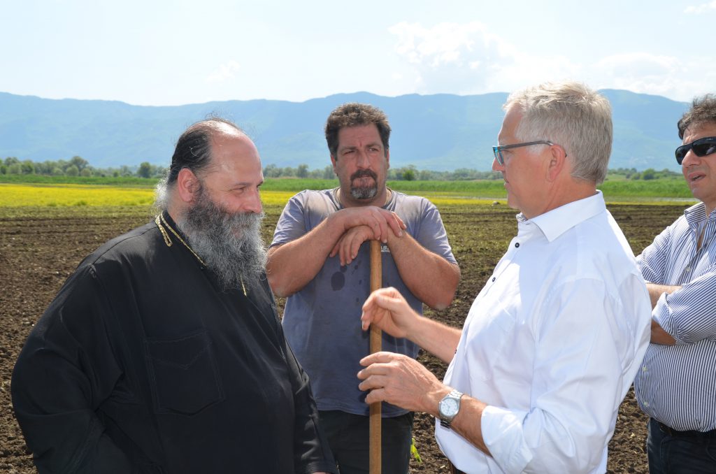 Ο κύριος Amberger, εμπειρογνώμονας για θέματα διττής εκπαίδευσης στη γεωργία, ανέπτυξε από τη πλευρά του τις πτυχές της ελληνογερμανικής ανταλλαγής τεχνογνωσίας από το παράδειγμα της Γερμανίας με έμφαση στην ανάπτυξη της διττής εκπαίδευσης στη Αγροτική Σχολή της Μονής Βελλά στο μέλλον, με την καθιέρωση θεωρητικής και πρακτικής εξάσκησης.