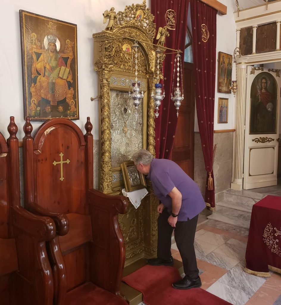 Στην τελετή απόδοσης φόρου τιμής, μαζί με τους ομογενείς, στο Μνημείο Πεσόντων του δεύτερου παγκοσμίου πολέμου στο ελληνορθόδοξο κοιμητήριο της Τρίπολης, όπως και στον ορθόδοξο ιστορικό ναό του Αγίου Γεωργίου των Σκλάβων, όπως τον αποκαλούν στην Τρίπολη, ο Γενικός Γραμματέας Αποδήμου Ελληνισμού υπενθύμισε την ιστορική ίδρυση της Κυρήνης το 631 π.Χ. από τον Βάττο από τη Θήρα μετά από ακριβείς οδηγίες του Μαντείου των Δελφών. Σε κλίμα έντονης συγκίνησης επεσήμανε ότι «εμείς οι Έλληνες ούτε χωρίζουμε, ούτε σπέρνουμε τη μισαλλοδοξία, ούτε γκρεμίζουμε με οργή, αλλά οικοδομούμε αδιαλείπτως γέφυρες αδελφοσύνης»