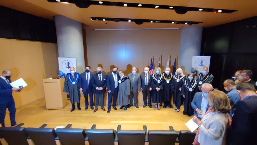 Ο Γενικός Γραμματέας Απόδημου Ελληνισμού και Δημόσιας Διπλωματίας κ. Ιωάννης Χρυσουλάκης απένειμε, εκ μέρους της Γενικής Γραμματείας Απόδημου Ελληνισμού και Δημόσιας Διπλωματίας του Υπουργείου Εξωτερικών, τιμητική πλακέτα στον Ελληνοαμερικανό Γερουσιαστή, κ. GusBilirakis για την προσφορά του στην Πατρίδα αλλά και στην Ομογένεια της Αμερικής καθώς και για το συνολικό πολιτικό του έργο και ήθος. Η απονομή, που έλαβε χώρα στο πλαίσιο της αναγόρευσής του δεύτερου σε Επίτιμο Διδάκτορα του Τμήματος Διοίκησης Τουρισμού της Σχολής Διοικητικών, Οικονομικών και Κοινωνικών Επιστημών, του Πανεπιστημίου Δυτικής Αττικής, στο Αμφιθέατρο του Μουσείο της Ακροπόλεως, έγινε σε κλίμα συγκίνησης παρουσία Πολιτικών και Ακαδημαϊκών της χώρας.