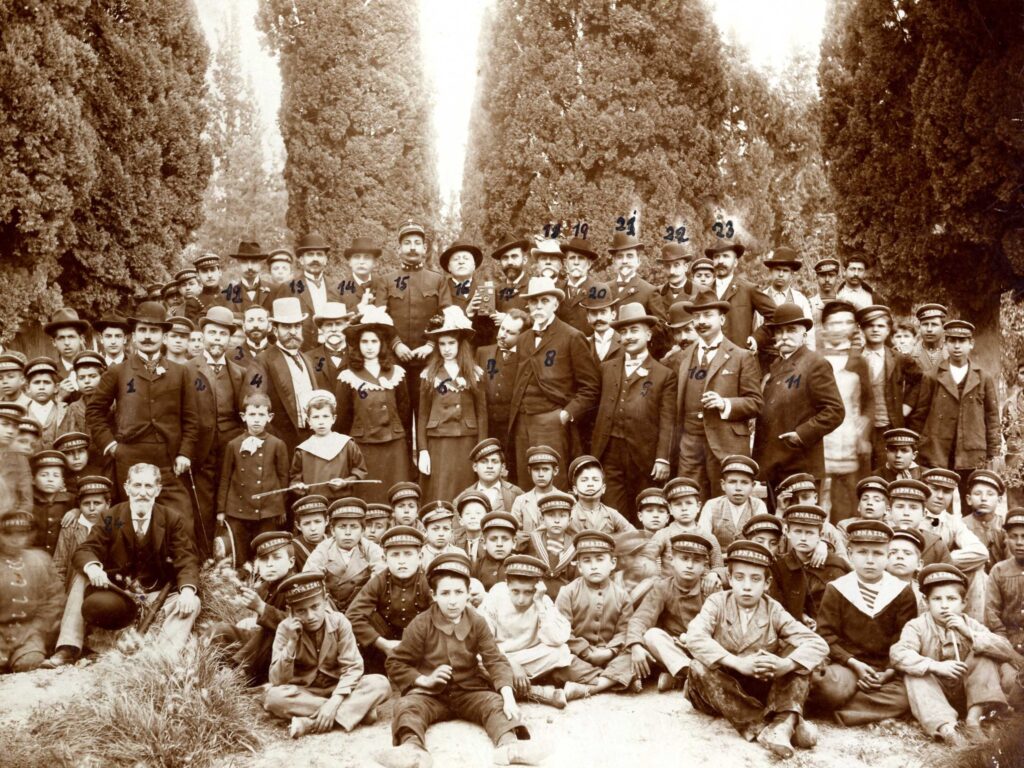 Ο μεγάλος ευεργέτης της Σχολής των Απόρων Παίδων του Παρνασσού Ευγένιος Ευγενίδης (4) με τον Πρόεδρο του Συλλόγου Τιμολέοντα Αργυρόπουλο (5) (σε εκδορμή των μαθητών το 1901).