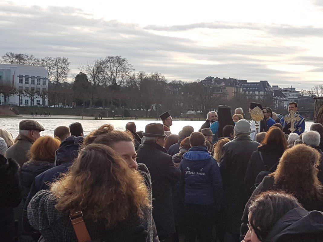 Με τη διακριτική παρουσία της αστυνομίας και του λιμενικού αλλά και πληθώρα πιστών μεταξύ των οποίων Έλληνες, Ρώσοι, Σέρβοι, Βούλγαροι, Ρουμάνοι και αρκετοί άλλοι πιστοί ολοκληρώθηκε η τελετή των Θεοφανίων των ορθοδόξων της Φραγκφούρτης. Οι ψαλμωδίες ψάλλονταν στα ελληνικά, ρωσικά, σερβικά, γερμανικά αλλά και σε όλες τις γλώσσες των ορθοδόξων.