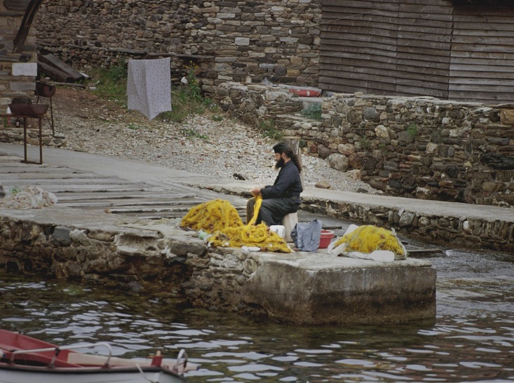 Απολάμβανα αχόρταγα το τοπίο και την αρχιτεκτονική προσπαθώντας, έστω και με αυτό τον τρόπο, να μπω στο πνεύμα και στην πραγματική ουσία του Αγίου Όρους, χωρίς να αγγίξω την Ιεροσύνη του. Το Άγιο Όρος είναι μια μεγάλη πρόκληση για κάθε καλλιτέχνη. Με τις φωτογραφίες μου προσπάθησα να αποδώσω τη μεγάλη απόσταση που χωρίζει τη διαβίωση στο Άθως – έναν κόσμο χωρίς χρόνο – με τη ροή των γεγονότων στον υπόλοιπο κόσμο. Χρησιμοποίησα προσωπικές τεχνικές φωτογράφησης, από πολύ παλιές και σπάνιες, όπως bichromate gum και individually treated silver gelatin technique, μέχρι ηλεκτρονικές επεξεργασίες έγχρωμης φωτογραφίας».