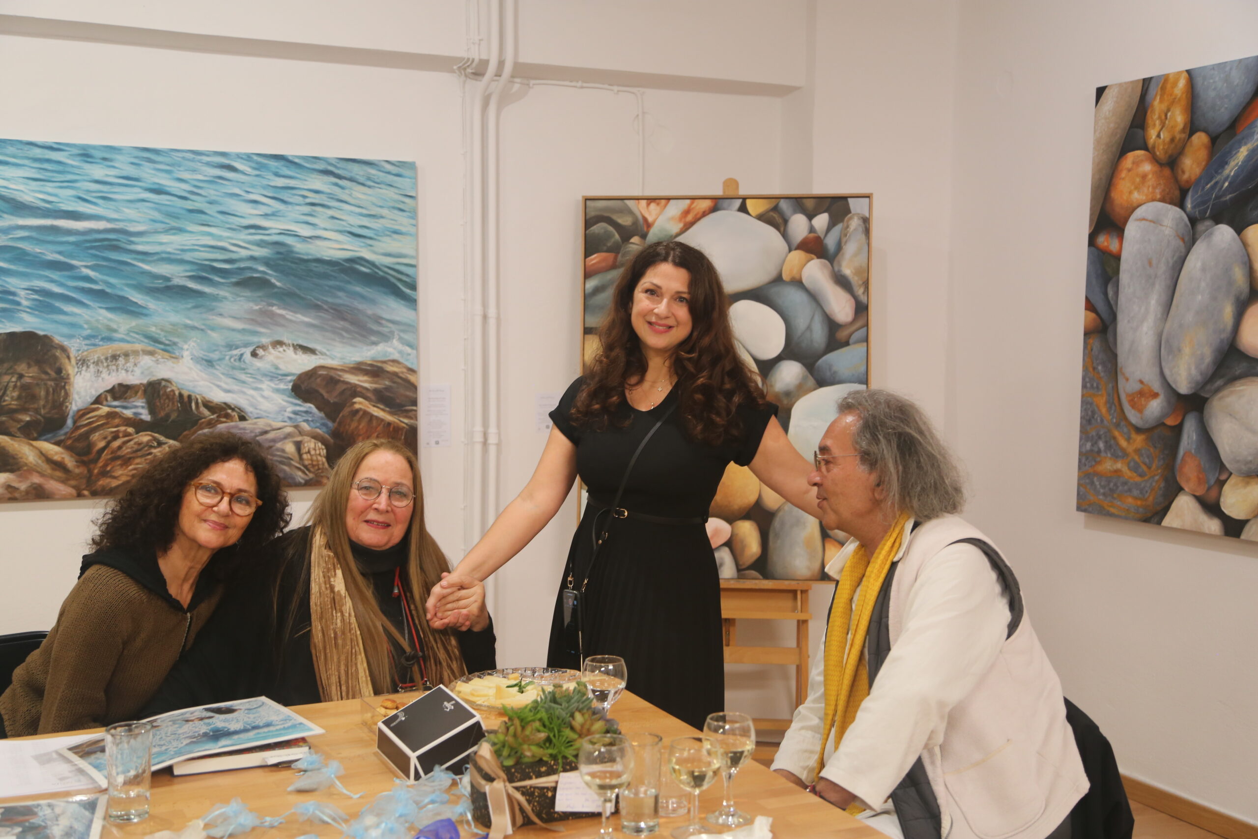 Η ομιλία της, βαθιά προσωπική και συγκινητική, αποκάλυψε την πηγή έμπνευσής της: την πέτρα ως σύμβολο σταθερότητας και αιωνιότητας, τη θάλασσα ως ταξίδι της ψυχής, και το φως της Ελλάδας που την ακολούθησε μέχρι το Τέξας και την έφερε πίσω. Οι καλεσμένοι είχαν την ευκαιρία να δουν μοναδικούς πίνακες, να περιηγηθούν στο ατελιέ όπου γεννιέται η τέχνη της, και να συνομιλήσουν μαζί της.