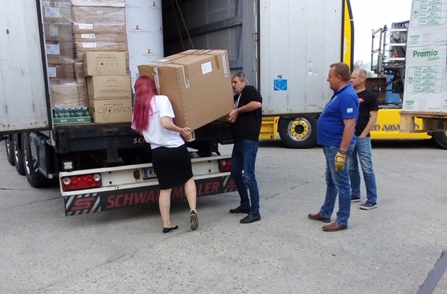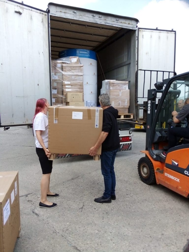 Στις φωτογραφίες , μέσα στο κείμενο εθελοντές φορτώνουν το ιατρικό υλικό στο φορτηγό με το οποίο μεταφέρθηκε στην Ελλάδα.