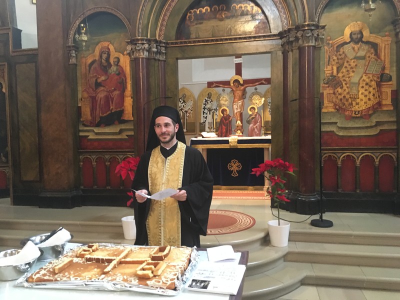 Μετά την επίδοση του άρτου στον καθηγητή κ. Νικολακόπουλο και την αναφορά του στο Τμήμα Ορθοδόξου Θεολογίας στο Πανεπιστήμιο Μονάχου, διένειμε τη Βασιλόπιτα σ όλους τους παρισταμένους προέδρους των ελληνικών συλλόγων και οργανισμών και στο εκκλησίασμα.