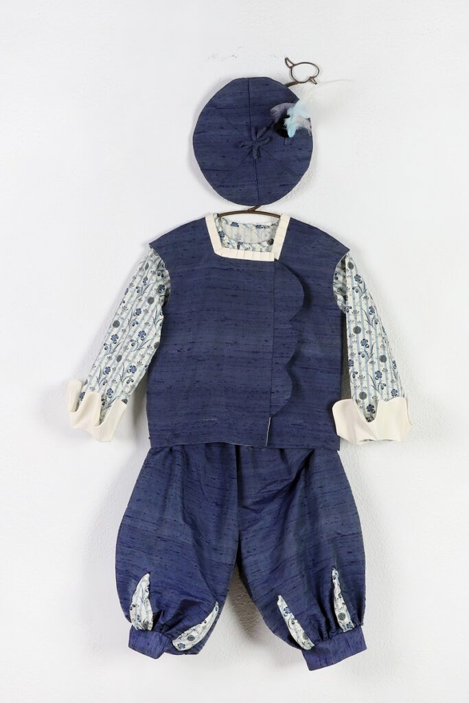 Ιδιαίτερο λαογραφικό ενδιαφέρον παρατηρείται επίσης στην προσπάθεια αναβίωσης τεχνών και τεχνικών, που χάθηκαν στο πέρασμα του χρόνου (κεντητική, υφαντική, φυσικές βαφές, δαντέλες χειροποίητες κ.ά.). Η ραφή πραγματοποιείται «διά χειρός», με ιδιαίτερη έμφαση στη λεπτομέρεια, από φυσικά υλικά (μετάξι, λινό, βαμβάκι, βισκόζη), καθώς και στην εσωτερική τους επένδυση χρησιμοποιούνται φυσικά και μαλακά υφάσματα, ώστε να μην προκαλούν αλλεργίες. Το κέντημα είναι χειροποίητο ή στη μηχανή με τελάρο, οι βελονιές παραδοσιακές ενώ χρησιμοποιούνται κλωστές βαμβακερές ή μεταλλικές DMC και μεταξωτές Σουφλίου. Οι δαντέλες είναι πολύ καλής ποιότητας, είτε είναι χειροποίητες (κοπανέλι, βελόνα, βελονάκι, κ.ά.), είτε του εμπορίου. Κάθε κουστούμι δημιουργείται επί παραγγελία, στα μέτρα του παιδιού και διηγείται μία ιστορία. Τα ενδύματα συνοδεύονται από αξεσουάρ, όπως στολίδια κεφαλής (στέκα, μπαρέτα), μπονέτ, μπολερό, παπούτσια, καπέλα, παλτό κ.ά.).’