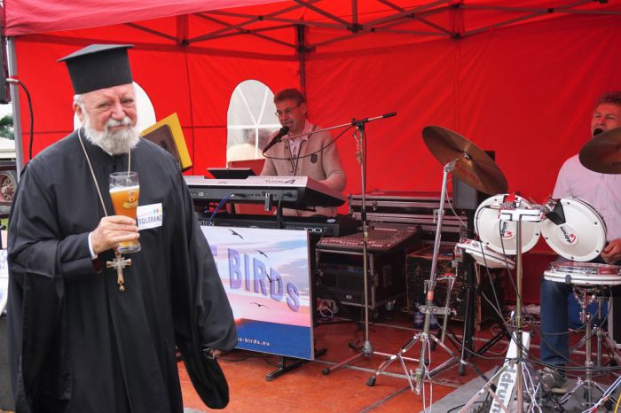 Ο π. Απόστολος ευχαρίστησε θερμά τους μουσικούς, για την ωραία, συμβολική αφιέρωση, κρατώντας ένα ποτήρι με βαυαρική μπύρα, σε ένδειξη της μακροχρόνιας πετυχημένης ενσωμάτωσης των Ελλήνων στη βαυαρική κοινωνία.
