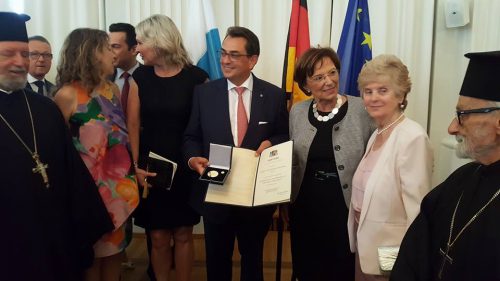 Η κ. Αιμιλία Μίλλερ, Βαυαρή Υπουργός στο Βαυαρικό Υπουργείο Εργασίας, Κοινωνικών Υπηρεσιών, Οικογενείας και Ενσωμάτωσης, τίμησε τον ομογενή μας δικηγόρο Σταύρο Κωσταντινίδη με το “Μετάλλιο της Βαυαρικής Πολιτείας για κοινωνικά επιτεύγματα”.