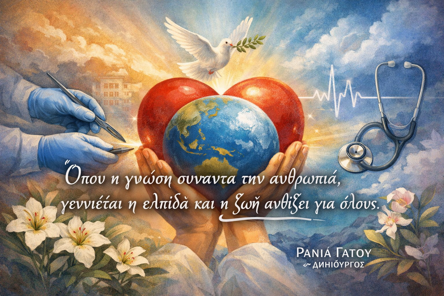 Ράνια Γάτου – Γενική Γραμματέας Coeurs Pour Tous | Μελετήτρια Καρδιοχειρουργικής, Ερευνήτρια Πολιτισμικού Λόγου, Ποιήτρια και Εικαστικός   Η γυναίκα είναι φως που διαχέει τρυφερότητα, δημιουργεί...