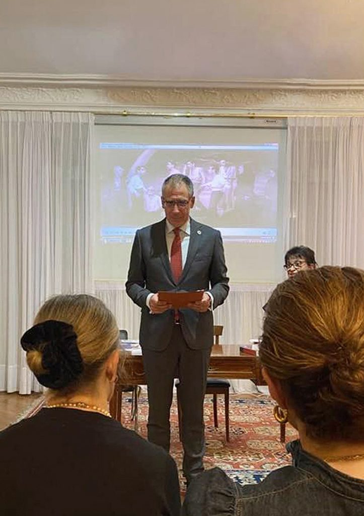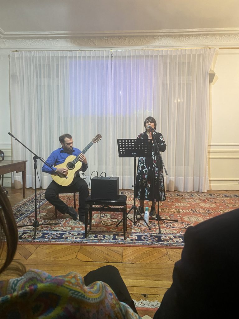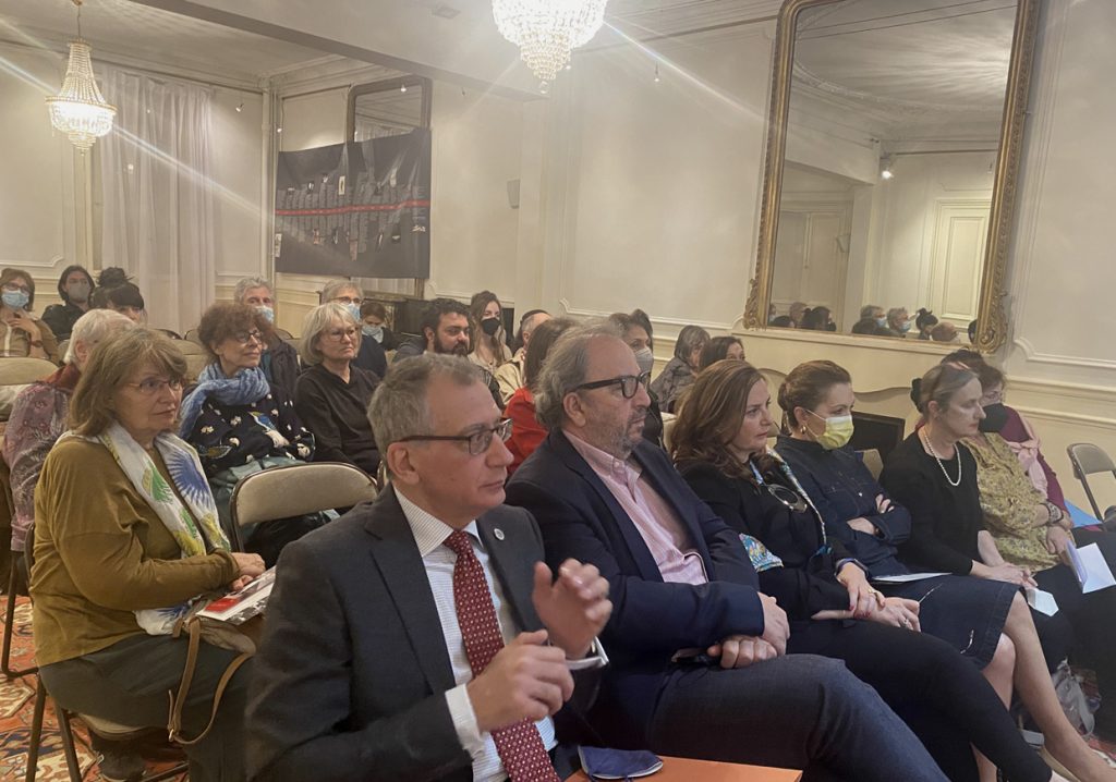 -η υπεύθυνη πολιτιστικής επιτροπής της Ελληνικής Κοινότητας στο Παρίσι, κ. Marie Roblin, η οποία απευθυνόμενη στο κοινό επεσήμανε μεταξύ άλλων: «Η σημερινή βραδιά είναι αποτέλεσμα της γόνιμης συνεργασίας της Διεύθυνσης Γραμμάτων του Ελληνικού Υπουργείου Πολιτισμού και Αθλητισμού, του Ελληνικού Ιδρύματος Πολιτισμού, του Ελληνικού Πολιτιστικού Κέντρου στο Παρίσι και, με πολλή μετριοφροσύνη, της Ελληνικής Κοινότητας Παρισιού και Περιχώρων».