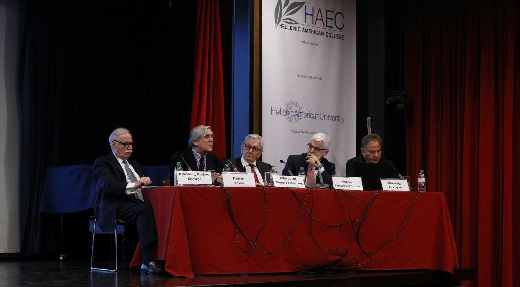 Με επιτυχία πραγματοποιήθηκε την Τρίτη 27 Μαρτίου 2018 στο θέατρο της Ελληνοαμερικανικής Ένωσης η εσπερίδα με θέμα: «Προοπτικές της ελληνικής οικονομίας και ο ρόλος της  κοινωνικής ασφάλισης». Η εκδήλωση που διοργάνωσαν το Hellenic American College / Hellenic American University και η Ελληνοαμερικανική Ένωση σε συνεργασία με το Ελληνικό Τμήμα της Ένωσης Ευρωπαίων Δημοσιογράφων, στο πλαίσιο της δημοφιλούς σειράς εκδηλώσεων Διάλογος για την Ανάπτυξη εστίασε στην σχέση του συνταξιοδοτικού και των εισφορών με την οικονομική ανάπτυξη.