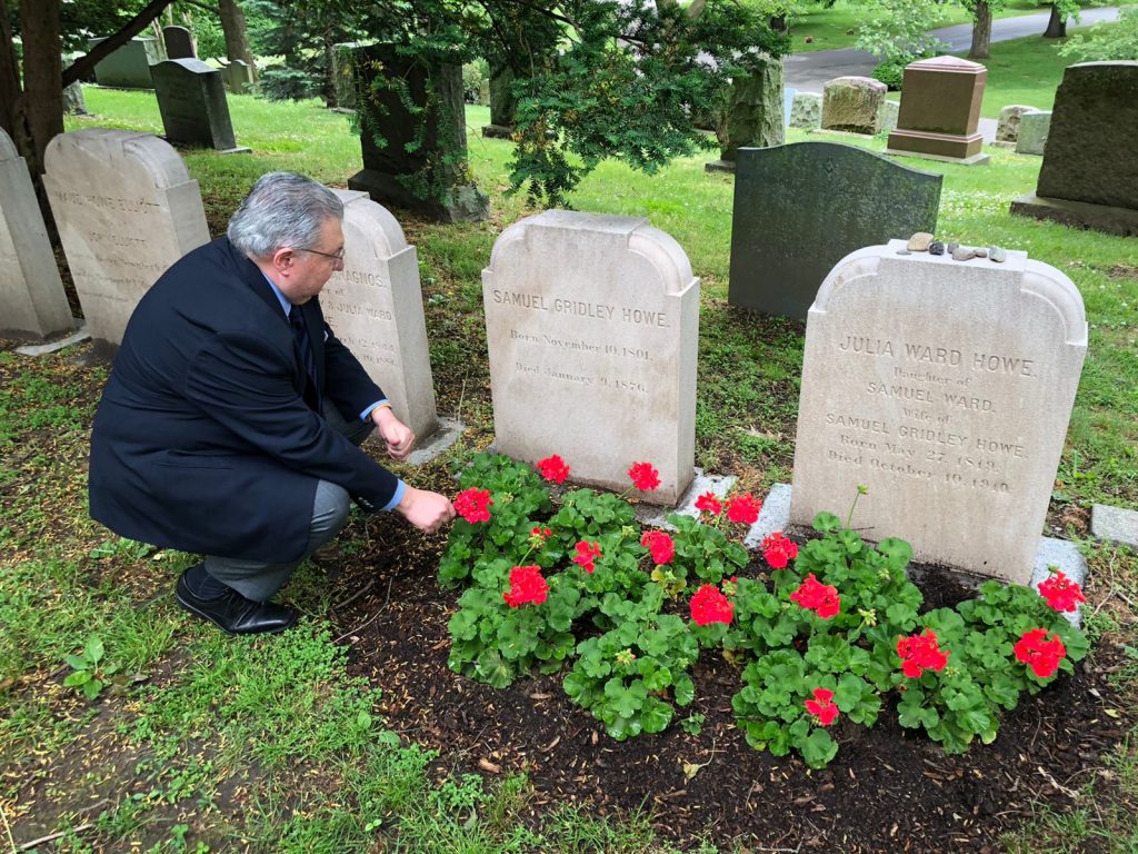 Σε μια υψηλού συμβολισμού επίσκεψη, ο Γενικός Γραμματέας επισκέφθηκε το Κοιμητήριο του Mount Auburn της Μασαχουσέτης, στο οποίο κείνται οι μεγάλοι Αμερικανοί φιλέλληνες Samuel Gridley Howe και Εdward Everett.