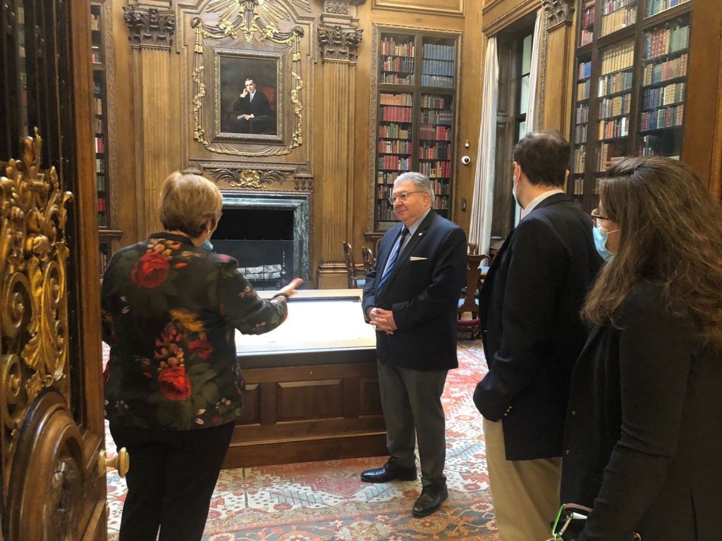 Στο πλαίσιο της ανάδειξης του πολύτιμου πολιτιστικού κεφαλαίου της Νεοελληνικής Γραμματείας και της ελληνικής γλώσσας, ο κ. Χρυσουλάκης επισκέφθηκε στο Πανεπιστήμιο Harvard την περίφημη Βιβλιοθήκη Widener, η οποία διαθέτει τη μεγαλύτερη συλλογή Νεοελληνικής Γραμματείας στον κόσμο. Η συλλογή ξεκίνησε από τον μεγάλο λόγιο, μαθητή του Διαφωτιστή Άνθιμου Γαζή, Καθηγητή της Νέας Ελληνικής στο Harvard και λεξικογράφο, Σοφοκλή Ευαγγελινό Αποστολίδη, ο οποίος δώρισε όλη την περιουσία του στο Πανεπιστήμιο για να δημιουργηθεί η ελληνική συλλογή. Η ξενάγηση στα άδυτα της Βιβλιοθήκης έγινε από την ελληνικής καταγωγής βιβλιοθηκονόμο, Rhea Lesage Karabelas, συντονίστρια για τις κλασσικές σπουδές και υπεύθυνη της ελληνικής συλλογής. Ο κ. Χρυσουλάκης συναντήθηκε, επίσης, με την Εκτελεστική Διευθύντρια του Κέντρου FXB του Harvard για την Υγεία και τα Ανθρώπινα Δικαιώματα, Ναταλία Λινού.