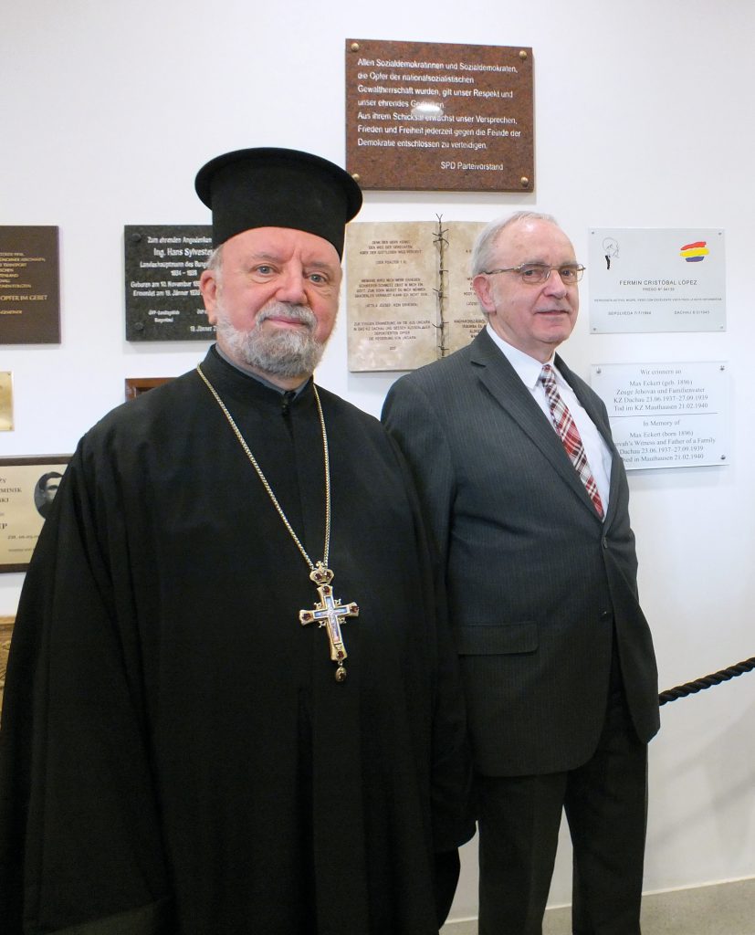 Ο π. Απόστολος και ο εκπρόσωπος της ομάδας των αυτοαποκαλουμένων “Μαρτύρων του Ιεχωβά”, στη πόλη Νταχάου κ. Erhard Klein.