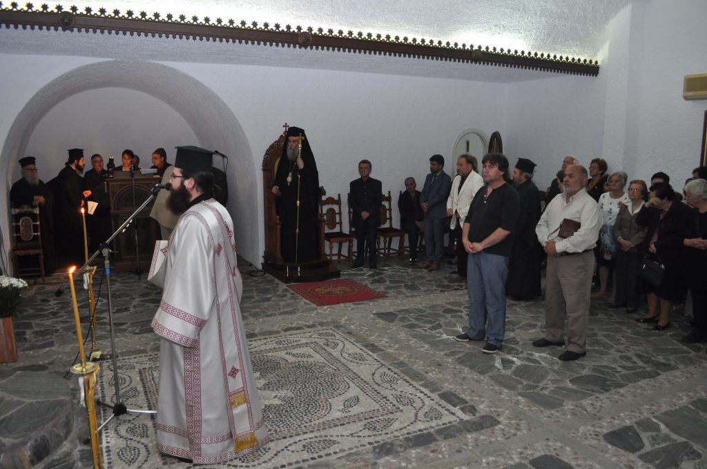 Του Εσπερινού χοροστάτησε ο Σεβασμιώτατος Μητροπολίτης  κ. Αμφιλόχιος, ο οποίος στον σύντομο λόγο του αναφέρθηκε στο μοναδικό έργο των Αγίων ισαποστόλων, περί του εκχριστιανισμού των Σλάβων, τη σημασία και τη σπουδαιότητά του ως και τα μηνύματα που στην εποχή μας εκπέμπει. Αναφέρθηκε επίσης, στο Οικουμενικό μας Πατριαρχείο, το Οποίο, όπως είπε, κληροδότησαν οι αιώνες και οι ιεροί κανόνες της Εκκλησίας κατέχοντας και διαδραματίζοντας ρόλο συντονιστικό εις την οικουμενική Ορθοδοξία. Ο κ. Αμφιλόχιος, τόνισε, επίσης, την ανάγκη επανεύρεσης και πραγμάτωσης των αξιών που πρεσβεύουν οι Άγιοι Κύριλλος και Μεθόδιος στην καθημερινή μας ζωή, αλλά και στην εποχή της κρίσης των αξιών που διανύουμε στις ημέρες μας. Ακολούθως, ο Γενικός Διευθυντής της ΟΑΚ, Δρ Κωνσταντίνος Ζορμπάς, χαιρέτισε και αναφέρθηκε εις τους εορτασμούς των 50 ετών λειτουργίας του Ιδρύματος ευχαριστώντας όλους τους συνεργάτες του Ιδρύματος για την προετοιμασία των εορταστικών εκδηλώσεων. Ακολούθησε κέρασμα, προσφορά της Ακαδημίας.