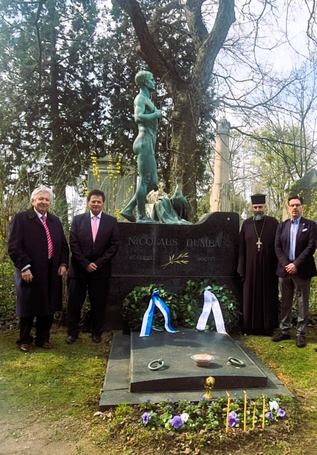 Ως ένδειξη σεβασμού, οι δύο Σύλλογοι, ο Μακεδονικός Σύλλογος και η AHEPA Βιέννης, κατέθεσαν στεφάνια στον τάφο του Νικόλαου Δούμπα στο κεντρικό νεκροταφείο Βιέννης και τέλεσαν επιμνημόσυνη δέηση.