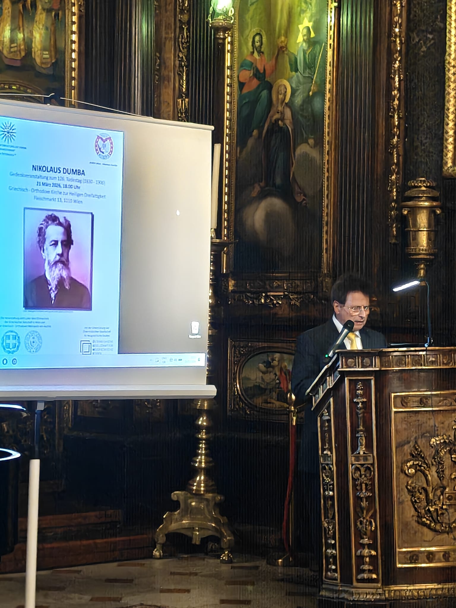 Με αφορμή την συμπλήρωση 126 ετών από τον θάνατο του Εθνικού Ευεργέτη Νικολάου Δούμπα ο Διαπολιτιστικός Σύλλογος “Μακεδονία” Αυστρίας κάλεσε την ΑΧΕΠΑ Βιέννης να συμμετάσχει σε οργάνωση τιμητικής εκδήλωσης εις μνήμη του. Η κοινή εκδήλωση των δύο συλλογικών φορέων πραγματοποιήθηκε με μεγάλη επιτυχία στις 21 Μαρτίου 2026 στον μητροπολιτικό ναό της Αγίας Τριάδος Βιέννης. Την εκδήλωση που τελούσε υπό την αιγίδα της Ελληνικής Πρεσβείας Βιέννης , της Ιεράς Μητροπόλεως Αυστρίας και είχε την υποστήριξη της Αυστριακής Εταιρείας Νεοελληνικών Σπουδών ετίμησαν με την παρουσία ο εξοχότατος Πρέσβυς της Ελλάδος στην Αυστρία κ. Ηλιόπουλος, τους ο Σεβασμιώτατος Μητροπολίτης Αυστρίας κ. Αρσένιος, ο εξοχότατος Πρέσβυς της Κυπριακής Δημοκρατίας στην Αυστρία κ. Ιγνατίου, ο θεοφιλέστατος Επίσκοπος Αρίστης κ. Μάξιμος, εκπρόσωποι διεθνών Οργανισμών και των Δημοτικών Αρχών της Βιέννης, Πρόεδροι και εκπρόσωποι των Συλλογικών Φορέων Βιέννης καθώς και πολλά Μέλη και Φίλοι του Μακεδονικού Συλλόγου και της ΑΧΕΠΑ Βιέννης.