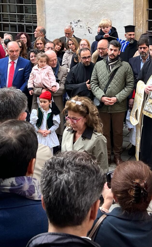 Δεξίωση παρέθεσε στην Ελληνική Πρεσβεία της Αυστρίας, η ΑΕ η πρέσβης, κυρία Αικατερίνη Κόϊκα. με αφορμή την Επέτειο της 25ης Μαρτίου, ενώ ο Σεβασμιωτάτος Μητροπολίτης Αυστρίας, Έξαρχος Ουγγαρίας και Μεσευρώπης κ.κ. Αρσενίος χοροστάτησε στην παμηγυρική Θεία Λειτουργία στον Ιερό Ναό του Αγίου Γεωργίου, στην Βιέννη.