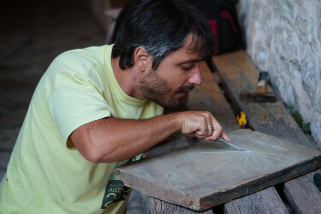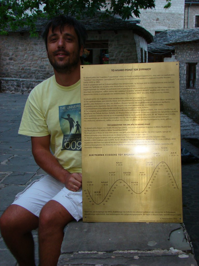 Καθόλου! Χρειάστηκε απλά να μελετήσω κάποια βασικά στοιχεία για τα ηλιακά ρολόγια. Θα έλεγα ότι πιο πολύ δυσκολεύτηκα για τη σύνταξη του κειμένου της επιγραφής. Έπρεπε να γίνει κατά το δυνατόν πιο κατανοητό, ακόμα και από τον αδαή περί αστρονομίας, της κίνησης του Ήλιου κτλ, να διατηρεί στοιχειώδη τεχνικοεπιστημονική ακρίβεια και μάλιστα στον πολύ περιορισμένο χώρο που είχα διαθέσιμο. Το ακριβές σημείο τοποθέτησης και η κατάλληλη κλίση ανατέθηκαν με πλήρη επιτυχία στον φίλο Γιώργο Βαίτση, που ανέλαβε και την κατασκευή της στήριξης της πλάκας του ρολογιού, τον οποίο με την αφορμή αυτής της συνέντευξης θα ήθελα να τον ευχαριστήσω θερμά!