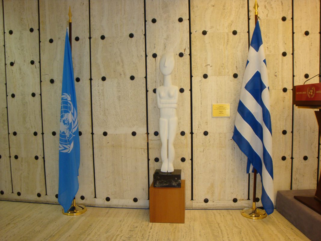 Δωρεά κυκλαδικού ειδωλίου (αντίγραφο) εκ μέρους της Ελλάδος στον ΟΗΕ στην Γενεύη