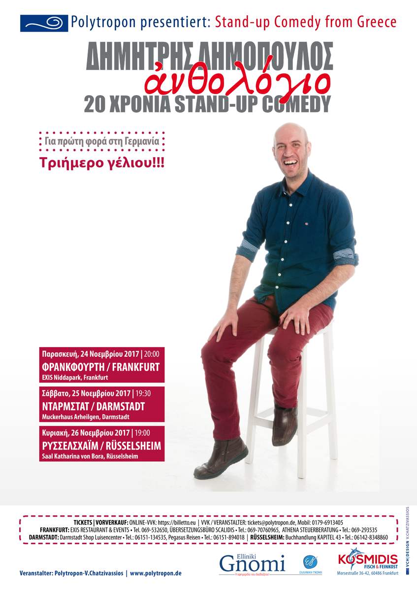 Δημήτρης Δημόπουλος “Ανθολόγιο” / 20 χρόνια στο stand-up comedy – Περιοδεία στη Γερμανία και παραστάσεις – Χορηγός επικοινωνίας η ΕΛΛΗΝΙΚΗ ΓΝΩΜΗ – Διοργανωτής: Polytropon – V. Chatzivassios | www.polytropon.de