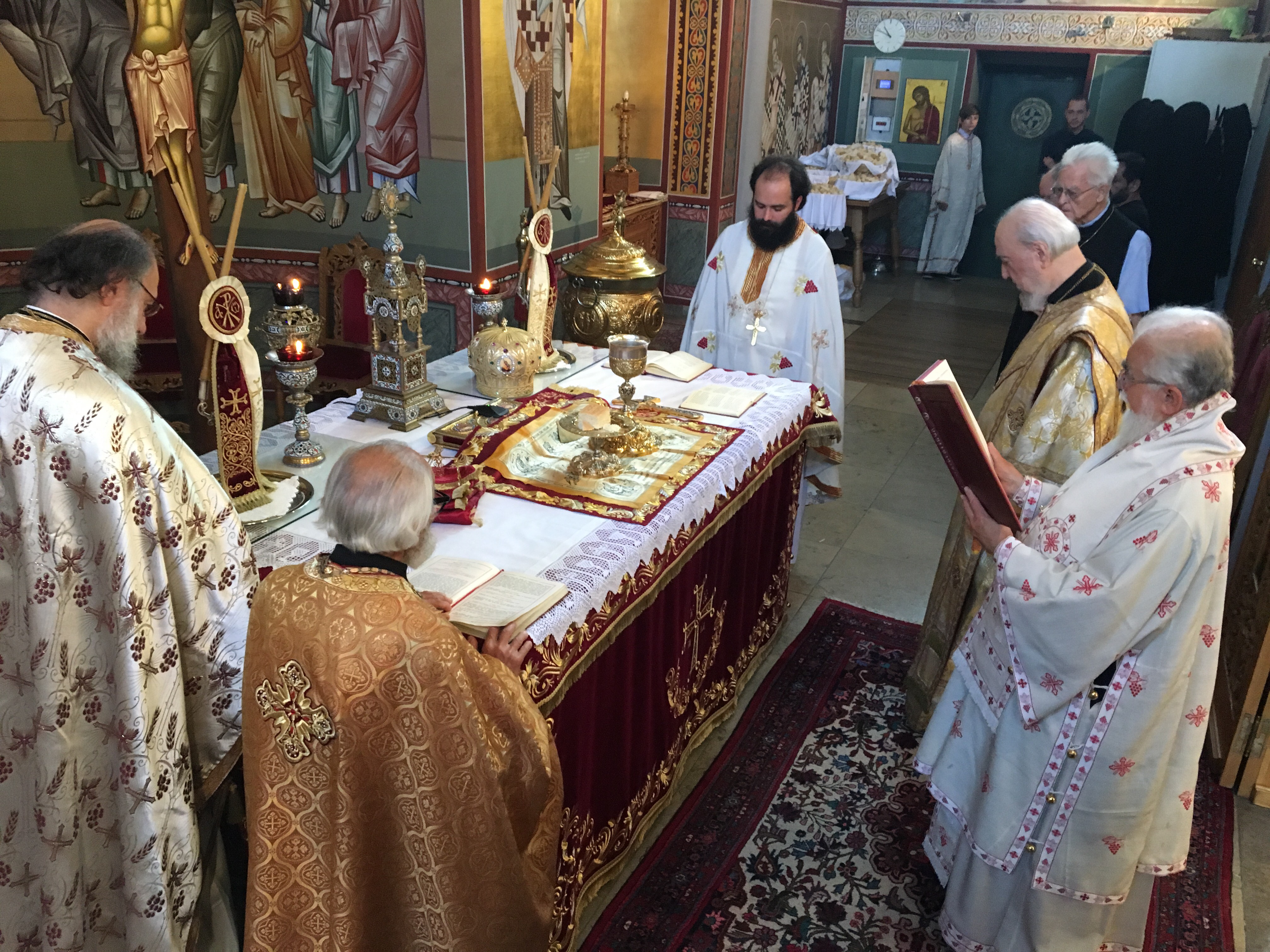 Οι ιεροψάλτες, ο Μουσικοδιδάσκαλος, Άρχων Υμνωδός της Αγίας του Χριστού Μεγάλης Εκκλησίας κ Αντώνιος Πατρώνας και οι δύο καθηγητές του Τμήματος Ορθοδόξου Θεολογίας στο Πανεπιστήμιο Μονάχου, ελλογιμώτατοι Αθανάσιος Βέτσης και Κωνσταντίνος Νικολακόπουλος, μαζί με τον ιεροψάλτη του ναού Πασχάλη Δουγαλή, “γκρέμισαν” τα τείχη του ναού με την μεγαλοφωνότατη ψαλμωδία και την άριστη απόδοση των βυζαντινών ύμνων, που απετέλεσαν αισθητή την παρουσία ορθόδοξης λατρείας όχι μόνο στους ορθόδοξους πιστούς, αλλά και στους διερχομένους από την κεντρική οδό βαυαρούς και άλλους τουρίστες.