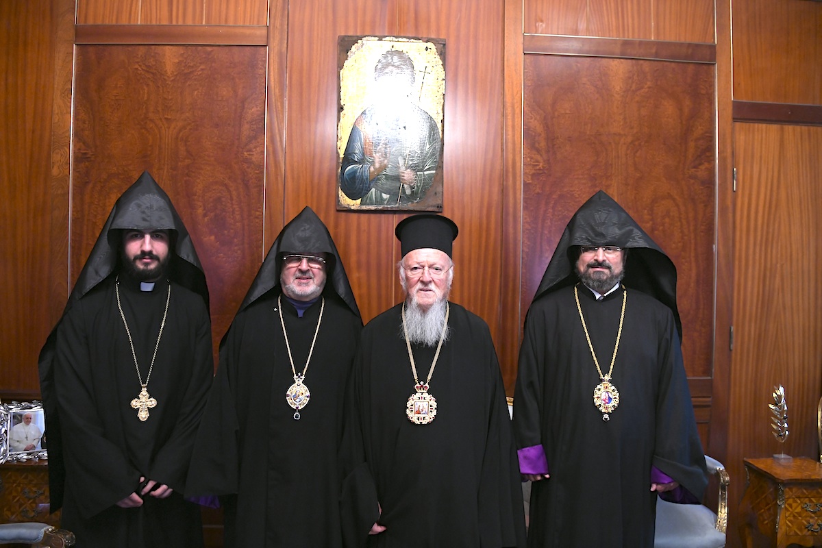 Το απόγευμα το Φανάρι επισκέφθηκε ο Τοποτηρητής του Αρμενικού Πατριαρχείου, Αρχιεπίσκοπος Aram Atesyan,συνοδευόμενος από συνεργάτες του, προκειμένου να ευχηθεί στον Οικουμενικό Πατριάρχη Βαρθολομαίο για την εορτή των Χριστουγέννων.