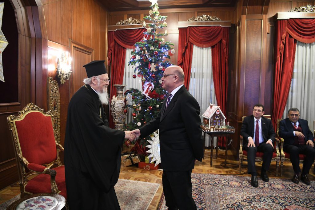 Ακολούθως, Αντιπροσωπεία του Κόμματος «CHP», υπό την ηγεσία του Βουλευτού κ.SezginTanrikulu, και με τη συμμετοχή του Υποψηφίου Δημάρχου για τον Μητροπολιτικό Δήμο της Πόλεως, κ.EkremImamoglu,καθώς και στελέχη της τοπικής Αυτοδιοικήσεως από διάφορους δήμους της Πόλεως, που νωρίτερα παρέστησαν στη Θεία Λειτουργία, έδωσαν τις εόρτιες ευχές τους στον Παναγιώτατο, ο οποίος τους δέχθηκε στην Αίθουσα του Θρόνου. Τις ευχές του έδωσε και ο Αντιπρόεδρος της Εβραϊκής Κοινότητας της Πόλεως κ.Moris Levi, Εκπρόσωπος των Θρησκευτικών και Μειονοτικών Κοινοτήτων στο Δ.Σ. της Γενικής Διευθύνσεως Βακουφίων, που εδρεύει στην Άγκυρα.