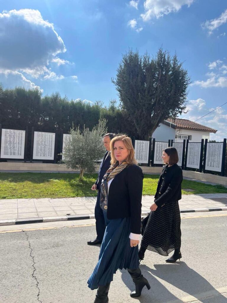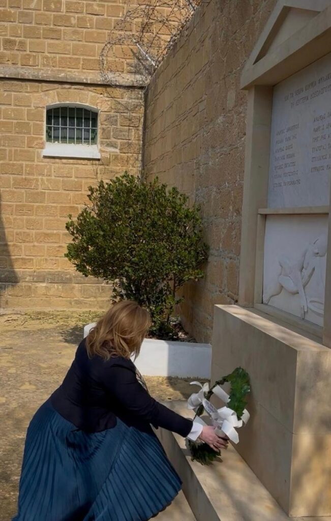 Στο πλαίσιο της επίσκεψής της στην Κύπρο, η κα Μυρογιάννη επισκέφτηκε τον Τύμβο της Μακεδονίτισσας και το κοιμητήριο ‘Φυλακισμένα Μνήματα’ στις Κεντρικές Φυλακές της Λευκωσίας, όπου κατέθεσε στεφάνι στη μνήμη των πεσόντων.