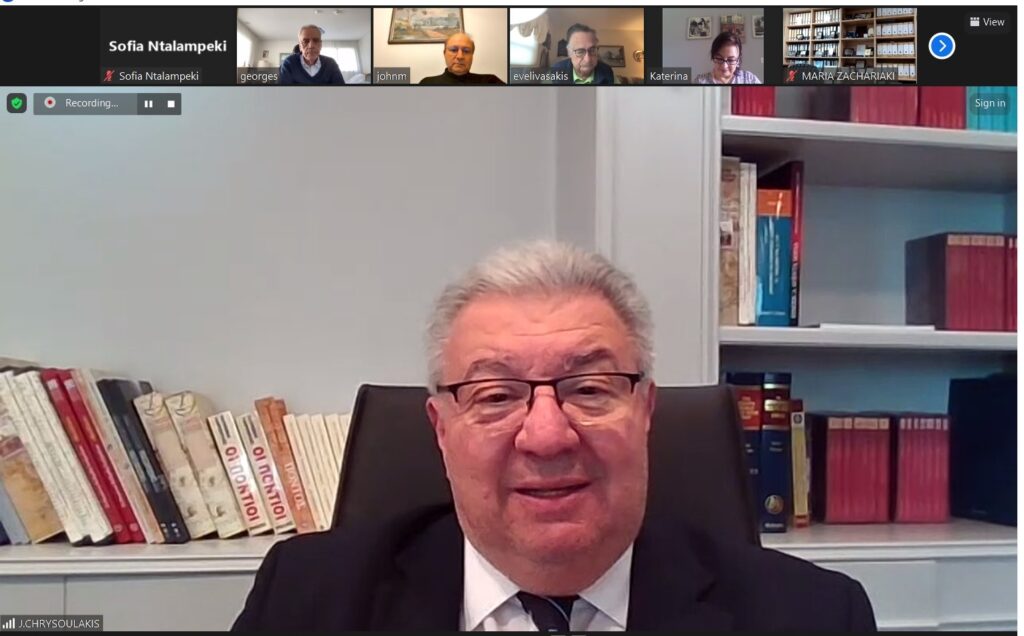 Τη συνέλευση χαιρέτησε αυτοπροσώπως ο Γ.Γ. Αποδήμου Ελληνισμού και Δημόσιας Διπλωματίας του Υπουργείου Εξωτερικών,κ. Ιωάννης Χρυσουλάκης ο οποίοςαφού συνεχάρητη ΔΕΦΝΚ για το έργο της, μίλησε για την αγάπη που έτρεφε στον μεγάλο συγγραφέα από τότε που ήταν μαθητής.