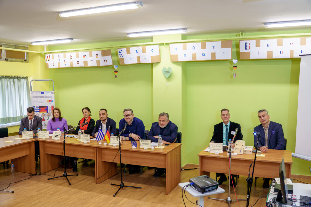 Στο δεύτερο μέρος συμμετείχαν οι εκπρόσωποι της Τοπικής Αυτοδιοίκησης και συγκεκριμένα ο κ. Παντελής Τσακίρης, Δήμαρχος Ωραιοκάστρου, ο κ. Κλεάνθης Μανδαλιανός, Δήμαρχος Κορδελιού-Ευόσμου, ο κ. Χρήστος Δεμερτζής, Αντιδήμαρχος Καθαριότητας & Ανακύκλωσης Δήμου Κορδελιού-Ευόσμου, η κ. Μαρία Γαβαλά, Αντιδήμαρχος Αθλητισμού και Νέας Γενιάς Δήμου Κορδελιού-Ευόσμου, ο κ. Νικόλαος Σαραμούρτσης, Δημοτικό Σύμβουλος και Συνεργάτης του Δημάρχου Ωραιοκάστρου σχετικά με τις αδελφοποιήσεις και η κα Ιωάννα Ζαφειρίου, Σύμβουλος Δημοτικής Κοινότητας Νεάπολης. Στις πολύ εύστοχες ερωτήσεις και παρατηρήσεις των μαθητών τοποθετήθηκε ο Δήμαρχος Ωραιοκάστρου, Παντελής Τσακίρης τονίζοντας την ανάγκη για ακόμη περισσότερες δράσεις της τοπικής αυτοδιοίκησης για θετικό περιβαλλοντικό αποτύπωμα σε συνεργασία μάλιστα με τα σχολεία αλλά και στο κρίσιμο θέμα των αδέσποτων ζώων. Ο κ. Κλεάνθης Μανδαλιανός, Δήμαρχος Κορδελιού-Ευόσμου, αναφέρθηκε στην συνδρομή της τοπικής αυτοδιοίκησης στην παραγωγή πράσινης ενέργειας και στην κυκλική οικονομία. Συντονίστρια του έργου εκ μέρους της Ελληνογερμανικής Συνέλευσης και της διοργάνωσης της εξαιρετικά ενδιαφέρουσας εκδήλωσης, συμβάλλοντας και στην παράλληλη μετάφραση για τη γερμανική πλευρά η κα Μαρία Βασιλειάδου.