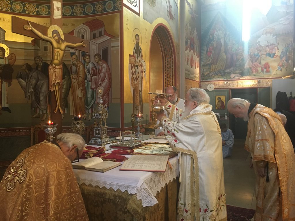 Μετά το πέρας της Θείας Λειτουργίας η Ενορία δεξιώθηκε τον Σεβασμιώτατο στην αίθουσα του πολιτιστικού Κέντρου “Οικουμενικός Πατριάρχης Βαρθολομαίος” όπου εδέχθη εκεί τα συγχαρητήρια, την αγάπη και τον θαυμασμό των ενοριτών για την τέλεση της Θείας Λειτουργίας.