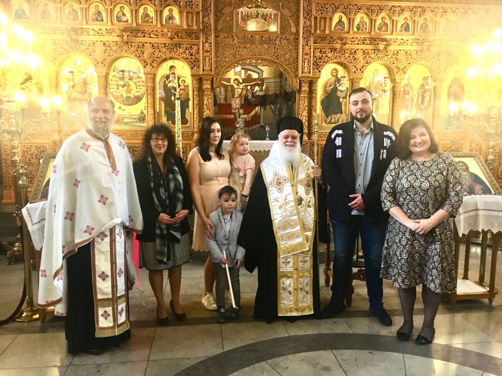 Ο Σεβ. κ. Ιωάννης τέλεσε το ιερό μυστήριο του βαπτίσματος το Σάββατο 19.10.2019 και την επόμενη ημέρα τον Όρθρο και τη Θεία Λειτουργία στον ιερό ναό των Αγίων Πάντων Μονάχου, πλαισιούμενος από τον συγγενή της κ. Θεοδοσίου και εφημέριο του ναού, Πρωτοπρεσβύτερο Γεώργιο Βλέτση. Στη Θεία Λειτουργία έλαβαν επίσης μέρος ο Πρεσβύτερος-Οικονόμος Πλούταρχος Κωσταντινίδης και ο ιεροδιάκονος Νικόλαος Τζώρτζης, του Πρωτοπρεσβυτέρου Αποστόλου Μαλαμούση συμπροσευχομένου στο ιερό Βήμα του ναού.