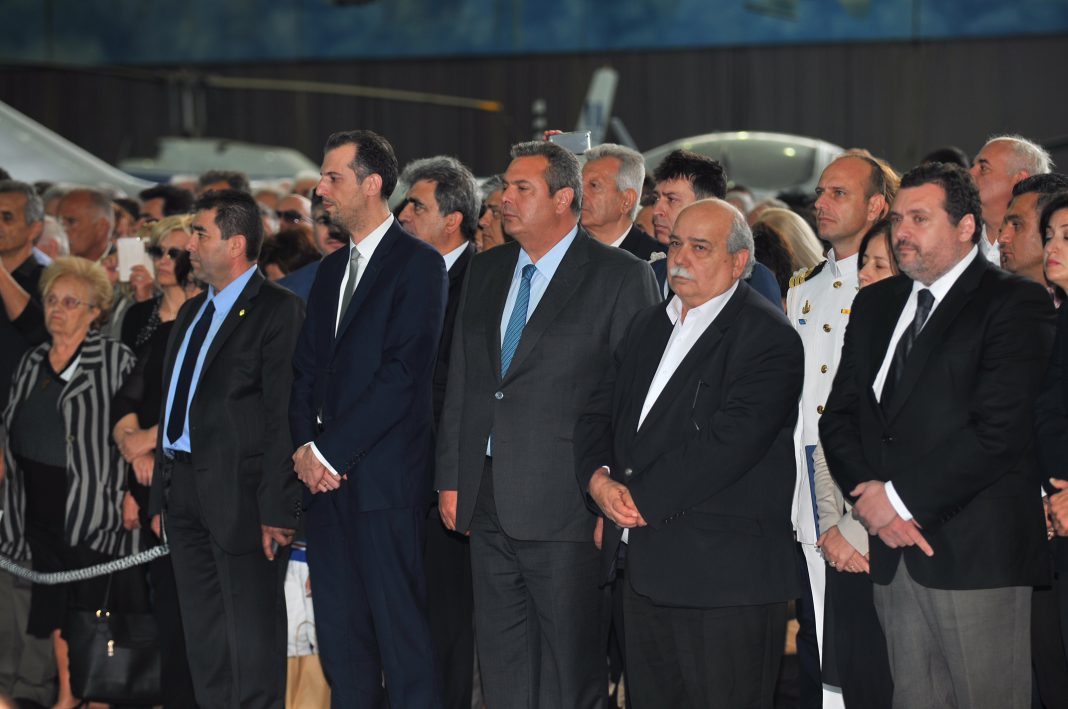 Ο Υπουργός Εθνικής Άμυνας Πάνος Καμμένος, ο Αρχηγός ΓΕΕΘΑ Ναύαρχος Ευάγγελος Αποστολάκης ΠΝ, ο Αρχηγός ΓΕΣ Αντιστράτηγος Αλκιβιάδης Στεφανής, ο Αρχηγός ΓΕΝ Αντιναύαρχος Νικόλαος Τσούνης ΠΝ, ο Αρχηγός ΓΕΑ Αντιπτέραρχος (Ι) Χρήστος Χριστοδούλου και η Ειδική Γραμματέας του Υπουργείου Εθνικής Άμυνας Καλλιόπη Παπαλεωνίδα παρέστησαν στην τελετή υποδοχής των λειψάνων των 17 αγνοουμένων-πεσόντων στην Κύπρο που πραγματοποιήθηκε στην Αεροπορική Βάση Δεκέλειας στο Τατόι. «Παρών» στην τελετή υποδοχής ήταν και ο Πρόεδρος της Βουλής Νίκος Βούτσης.